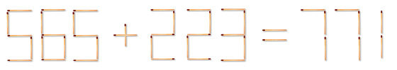 Streichholzrätsel #379 Veröffentlicht am 7. Februar 2026 von Klaus Antworten Die folgende Gleichung ist natürlich falsch. Lege zwei Streichhölzer so um, dass die Gleichung richtig ist. Soll eine 1 in eine 7 geändert werden, so zählt das Verschieben der betroffenen Streichhölzer aus Platzgründen nach rechts nicht als Umlegen.