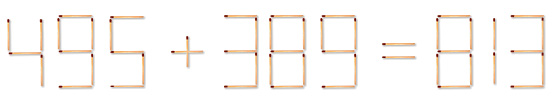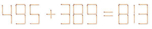 Streichholzrätsel #389 Veröffentlicht am 18. April 2026 von Klaus Antworten Die folgende Gleichung ist natürlich falsch. Lege zwei Streichhölzer so um, dass die Gleichung richtig ist. Soll eine 1 in eine 7 geändert werden, so zählt das Verschieben der betroffenen Streichhölzer aus Platzgründen nach rechts nicht als Umlegen.