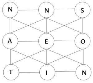 Irgendwo beginnt das gesuchte 9-buchstabige Wort, anschließend geht es durchgängig den Linien entlang weiter, entweder senkrecht, waagerecht oder diagonal.Jede Perle darf nur einmal angesteuert werden.