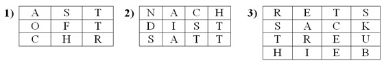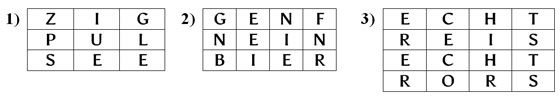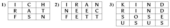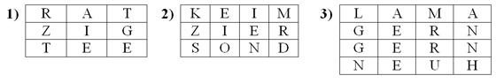 Hilfe, die Buchstaben dieser drei Wörter haben sich komplett neu sortiert. Doch wie waren die ursprünglichen Wörter? (ü = ue, ß = ss usw.)