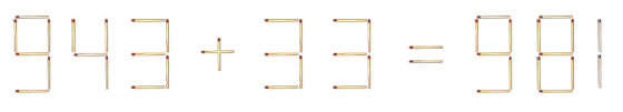 Lege zwei Streichhölzer so um, dass die Gleichung richtig ist. Es sind mindestens 4 Lösungen möglich.