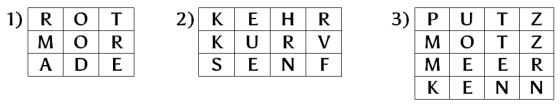 Wortpuzzle #172 – Kommunikation Veröffentlicht am 1. September 2014 von Klaus Hilfe, die Buchstaben dieser drei Wörter haben sich komplett neu sortiert. Doch wie waren die ursprünglichen Wörter? (ü = ue, ß = ss usw.)
