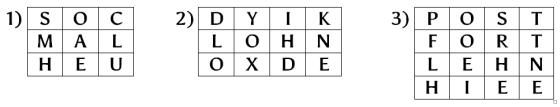 Wortpuzzle #174 – Natur Veröffentlicht am 8. September 2014 von Klaus Hilfe, die Buchstaben dieser drei Wörter haben sich komplett neu sortiert. Doch wie waren die ursprünglichen Wörter? (ü = ue, ß = ss usw.)